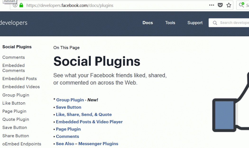 https://developers.facebook.com/docs/plugins.