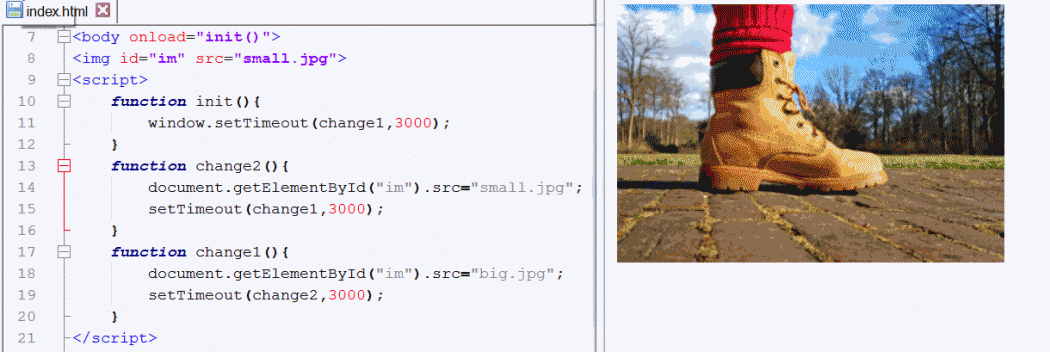 Esto significa que las dos imágenes cambiarán cada 3 segundos, hasta que salgamos de la página.